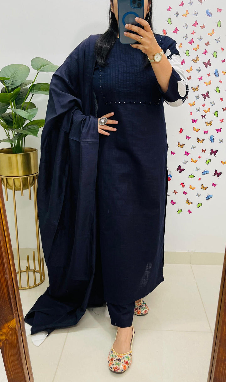 Designer Dark Blue Heavy Handworked Cotton Suit