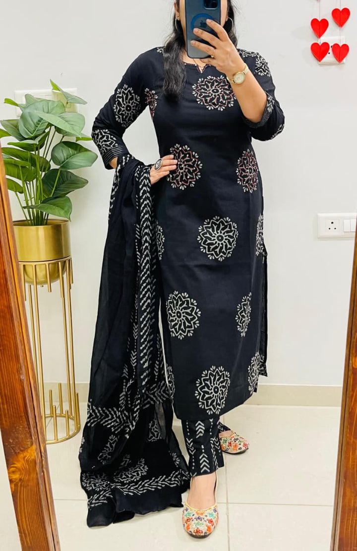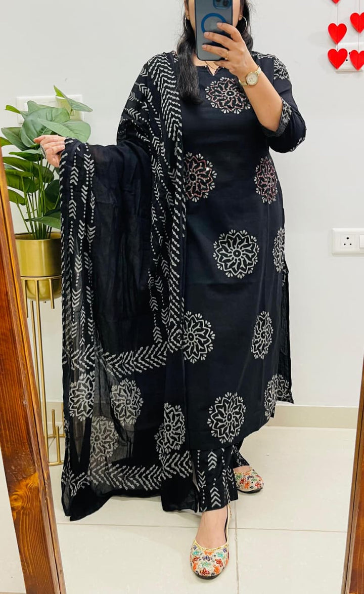 Indian Black Beauty in Block Cotton Suit